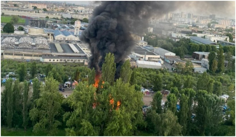 Incendiul impresionant s-a întins pe 1.000 m2 și a distrus cincisprezece rulote și adăposturi improvizate, precum și mai multe mașini.