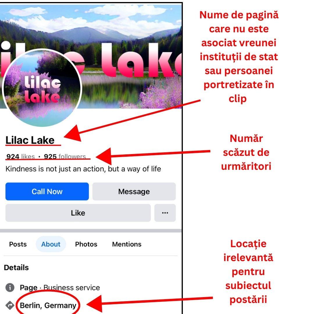 - Verificați informații legate de pagina sau contul care face promovarea unor astfel de 'oferte'. De exeplu în fotografia următoare , pagina respectivă a fost lansată în luna martie 2023, are puțin peste 900 de urmăritori și a publicat doar postări cu flori. Mai mult, numele paginii este "Lilac Lake". Este evident faptul că o astfel de pagină nu poate oferi oportunități reale de investiții, nefiind o sursă oficială, credibilă, care să lanseze astfel de oferte.