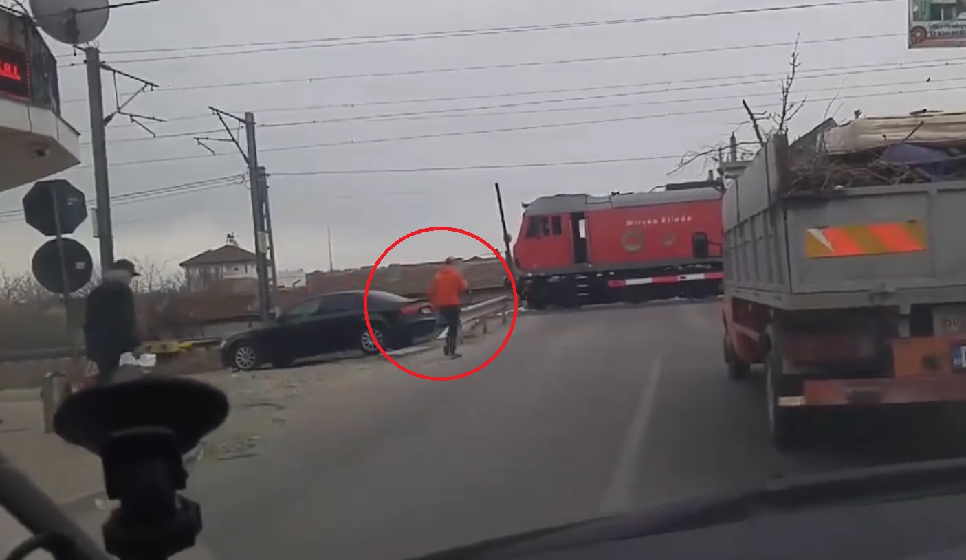 Mecanicul de tren a oprit în dreptul barierei, blocând circulația pentru a coborî să își cumpere o cafea.