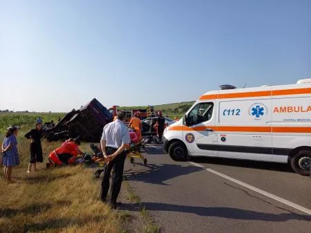 În accident au fost implicate un autoturism și un microbuz în care se aflau 15 persoane.