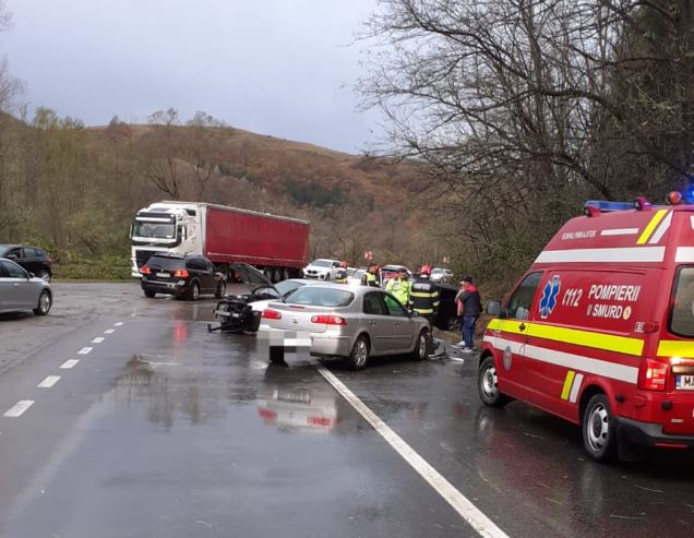 Un accident rutier în care au fost implicate trei autoturisme şi 10 persoane a avut loc pe DJ 109 F între oraşul Cavnic şi localitatea Budeşti din Munţii Gutâi.