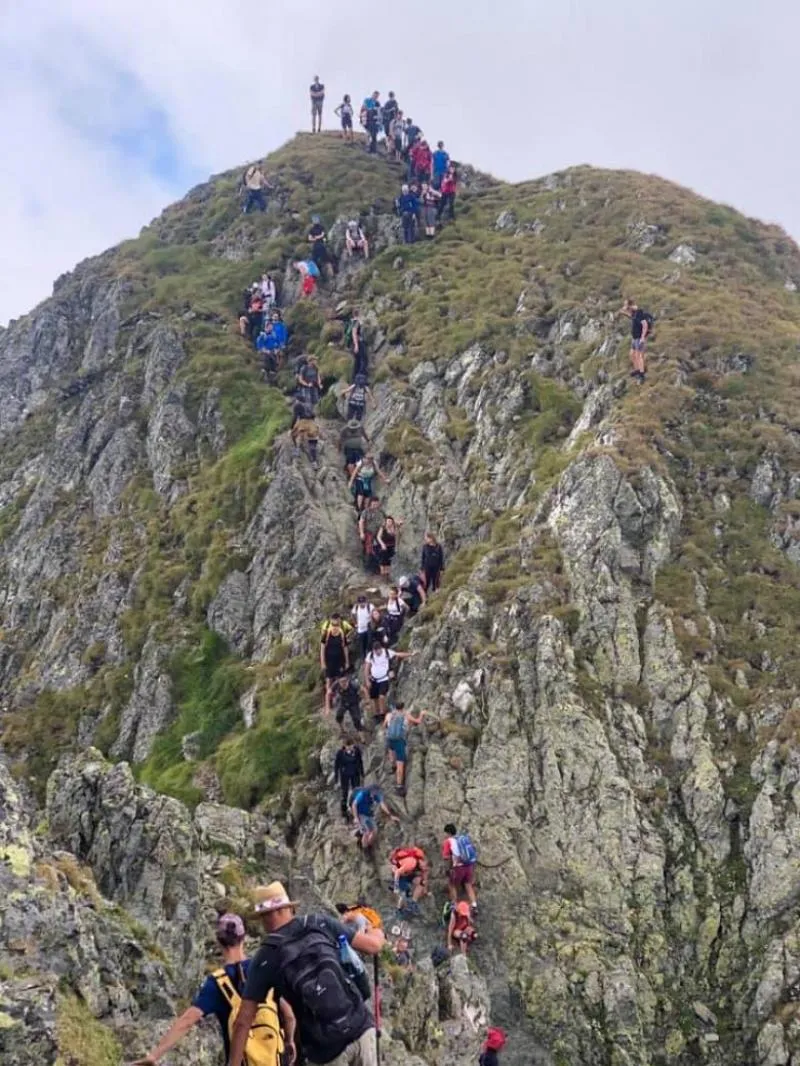 Aglomerație la munte! Coadă pentru o poză pe Vârful Moldoveanu - FOTO si VIDEO
