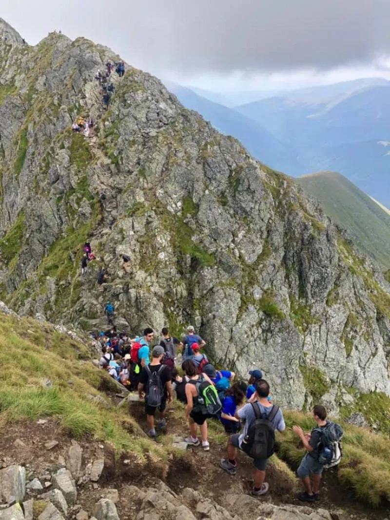 Românii au luat cu asalt muntele, dovadă stau imaginile surprinse în weekend de jurnalistul clujean Dan Izvoreanu. Sute de iubitori ai muntelui au fost surprinși pe poteca ce duce spre Vârful Moldoveanu, cel mai înalt din România - 2.544 m.