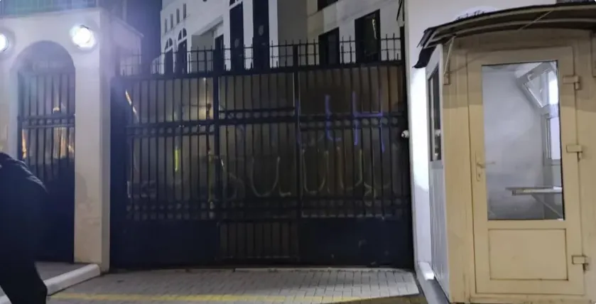 Ambasada Rusiei din Republica Moldova, vandalizată de ziua lui Vladimir Putin. Ce mesaj a fost scris pe poarta instituției