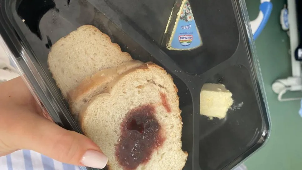 Un bărbat a fost revoltat când a văzut ce a primit de mâncare soţia sa, din partea Spitalului Municipal Bucureşti, imediat după ce aceasta a născut. Omul a fotografiat „preparatele”, iar imaginile au ajuns virale pe internet. În ele, se vede o caserolă care conține trei felii de pâine cu o lingură de gem, un triunghi de brânză topită şi o bucată mică de unt.