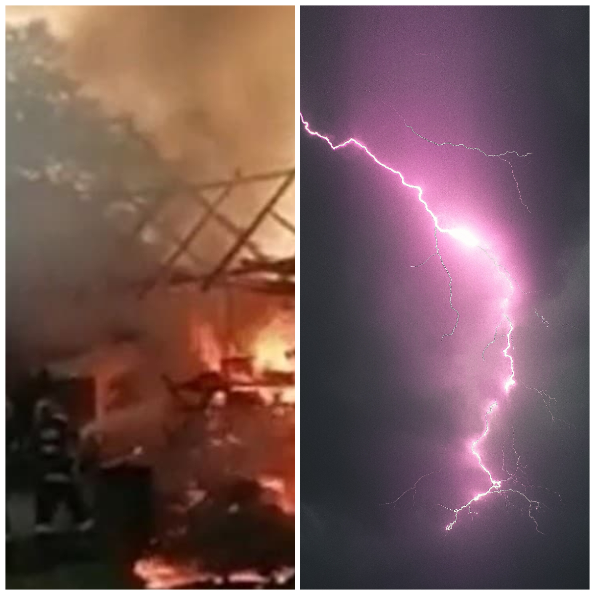 Atelier auto, făcut scrum după ce a fost lovit de fulger. Pompierii nu au mai putut salva nimic