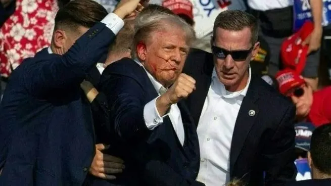 Donald Trump, care tocmai îşi începuse discursul, a fost imediat doborât la pământ de agenţii Secret Service. După câteva clipe, s-a ridicat, înconjurat de agenţii care l-au escortat de la scenă până la maşina lui. El şi-a ridicat pumnul în aer, sfidător, în aplauzele susţinătorilor săi.