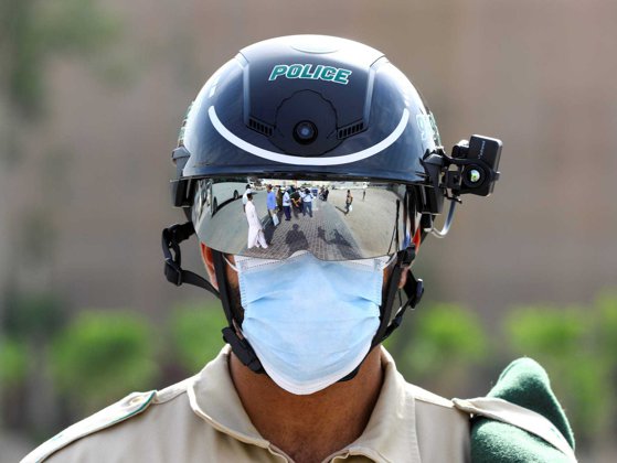 Au apărut poliţiştii cu căşti de supraveghere care scanează temperatura din mers - VIDEO