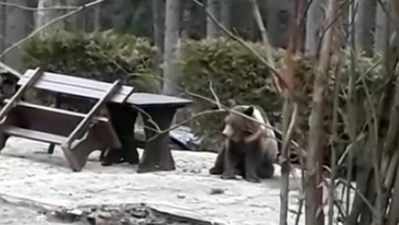 El a ieșit din curte de la noi, a trecut peste stradă, se duce în locul în care știa că găsește mâncare și vânătorul a venit și a avertizat lumea să intre din stradă pentru că ursul e periculos. El s-a retras către pădure și apoi nu am mai văzut ce s-a întâmplat”, a spus proprietara pensiunii în apropierea căreia se afla puiul de urs.