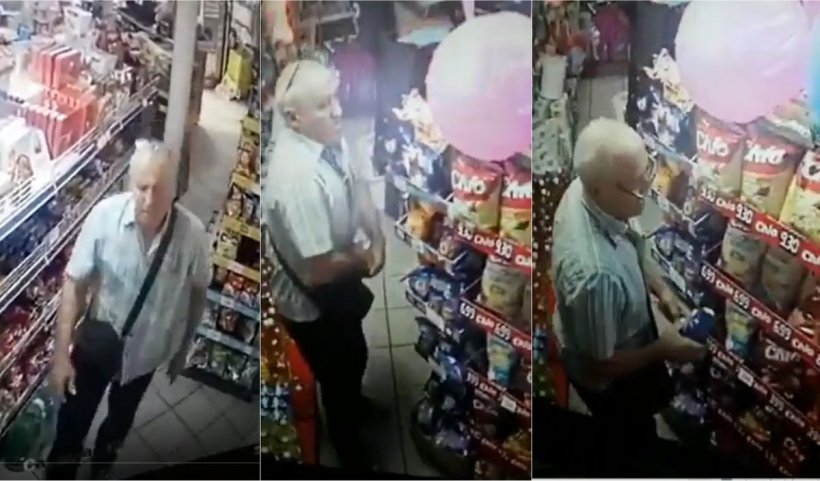 Bătrânul a furat din magazin orez şi paste făinoase. Reprezentanții magazinului au postat înregistrarea video de pe camerele de supraveghere ale supermarketului pe o rețea de socializare.