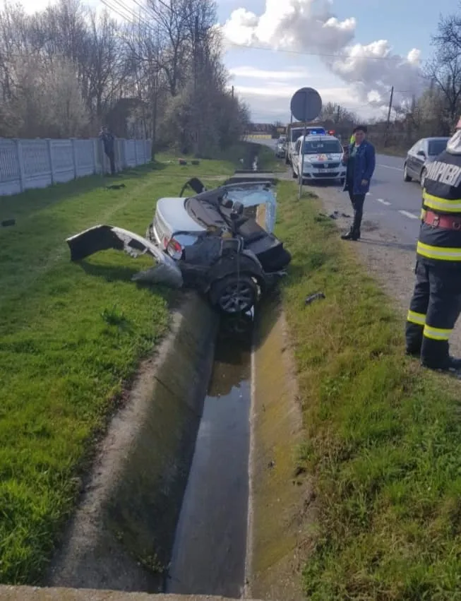 În accidentul rutier a fost implicat un singur autoturism, care a lovit un cap de pod.