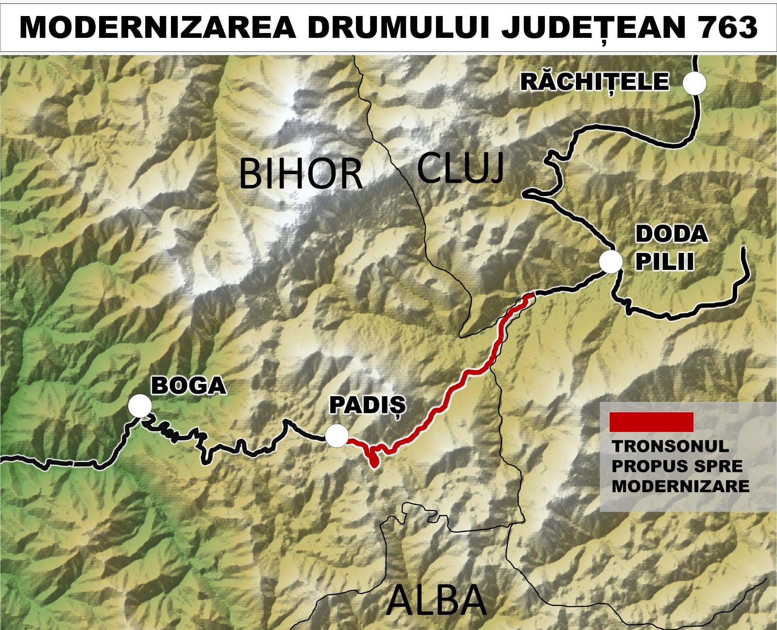 Președintele Consiliului Județean Bihor, Ilie Bolojan, anunță că va fi modernizat drumul forestier ce leagă, prin Apuseni, zona Boga - Padiş din județul Bihor, de zona Doda Pilii - Răchiţele din județul Cluj.