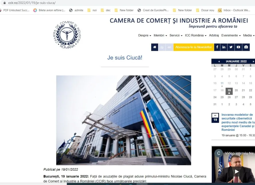 Camera de Comerț și Industrie a României (CCIR) a promovat un comunicat cu titlul ”Je suis Ciucă”. de solidaritate cu premierul Nicolae Ciucă, prins că și-a plagiat o parte din lucrarea de doctorat.