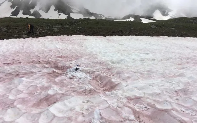 Din imagini se poate observa cum peticele de culoare roșie au pus stăpânire pe alocuri asupra albului curat al zăpezii. Cercetătorii numesc fenomenul „zăpadă sângerie”, și spun că acesta apare cu precădere vara, din cauza temperaturile ridicate.