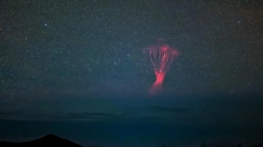 Fulgerul roşu, numit popular fulgerul elf, este un fenomen foarte rar, care apare o dată la zece ani, notează observatornews.ro.