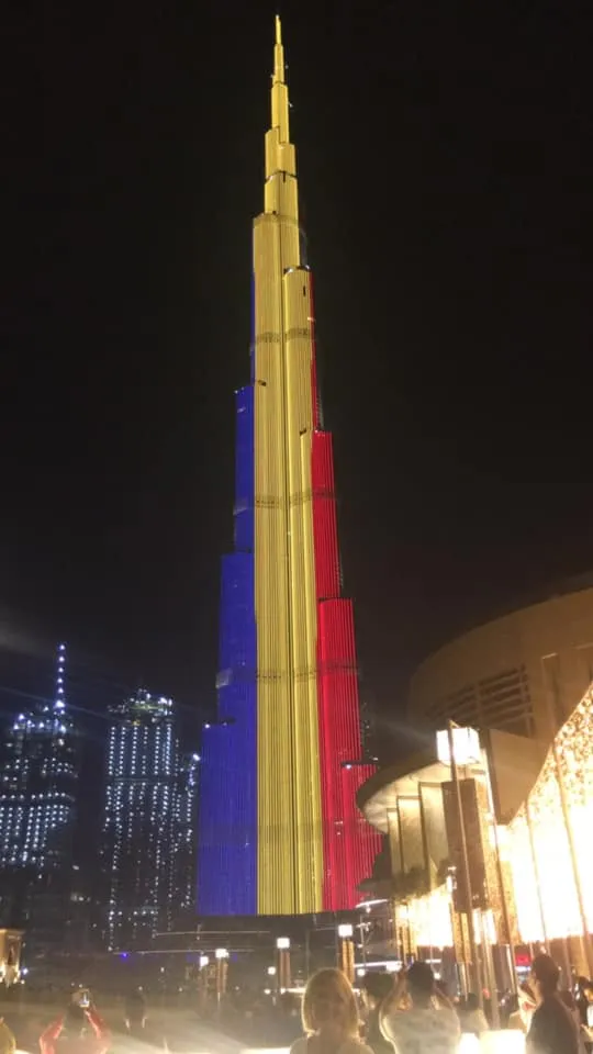 Cea mai înaltă clădire din lume luminată în culorile steagului României - FOTO