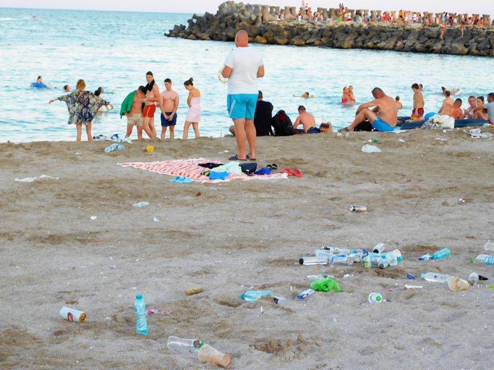 Plaja arată ca o groapă de gunoi după hoardele de turiști români.