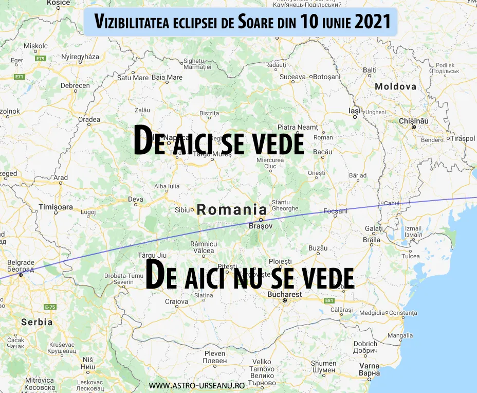„Pe 10 iunie se produce o eclipsă de Soare care se va vedea ca parțială din jumătatea de nord a țării noastre.