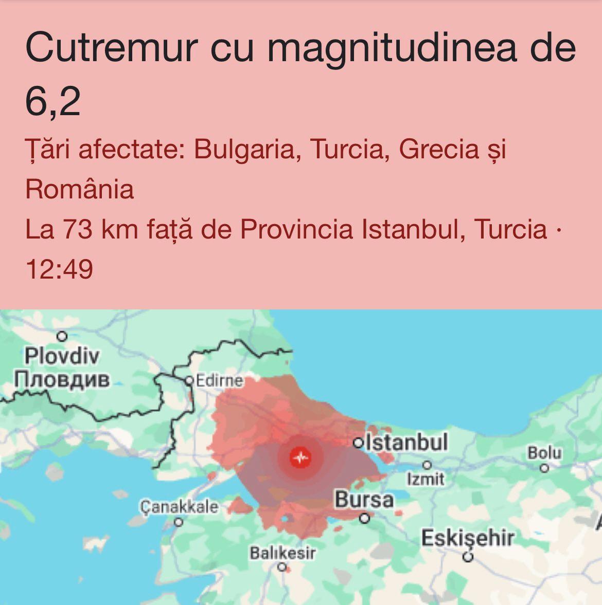Un cutremur cu magnitudinea 6,2 pe scara Richter a zguduit miercuri, 23 aprilie, zona Mării Marmara din Turcia, provocând panică în Istanbul și în orașele din apropiere. Seismul a fost atât de puternic încât undele s-au resimțit și în alte patru țări: România, Bulgaria, Grecia și Macedonia de Nord