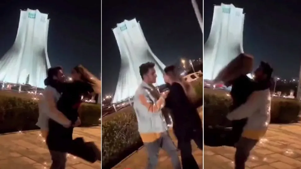 În clipul distribuit online, Astiyazh Haghighi, de 21 de ani, este văzută dansând fără vălul islamic împreună cu logodnicul ei, Amir Mohammad Ahmadi, în vârstă de 22 de ani, în Piața Azadi. Clipul a fost postat chiar de către cei doi tineri.