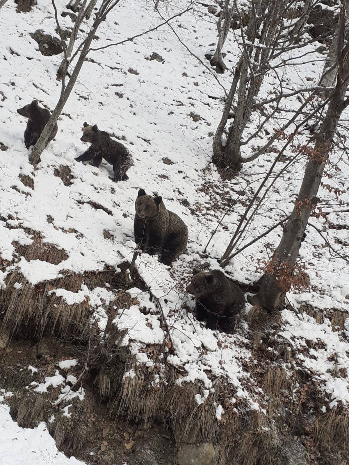 Lucrătorii Direcției Regionale de Drumuri și Poduri au fotografiat o familie de urși pe Transfăgărășan.