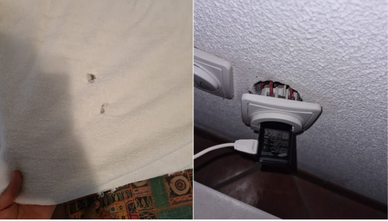 „Să nu mai zic că pe terasă nu exista un uscător de rufe/ sârmă/ șnur ca să poți pune prosoapele și costumele, că vorba aia ești la mare...ești nevoit să le pui pe bară și să iei toată rugina posibilă. Camera...în afara de patul foarte mare, salteaua bună, dar se mai auzea cate un scârțâit, iar fețele de pernă aveau urme de mucegai pe ele, a trebuit să dormim fară…ținând cont că eu aveam astm și nu îmi trebuia mucegai. De asemenea, știind că vin cu copil așa de mic, cu toate că este un copil foarte ascultător...nu îmi dai o cameră care are fire din priză scoase, care nu sunt foarte ok izolate și priza, la fel, trasă din perete”, a scris femeia, indignată.