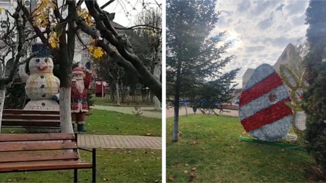 FOTO - Decorațiune cu iepurașul de Paște, pusă într-un parc înainte de Crăciun: „Copiii sunt derutați, nu știu dacă să îi mai scrie lui Moșu”