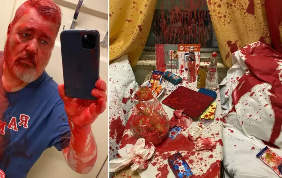 „Au turnat vopsea pe bază de ulei cu acetonă în compartiment. Ochii îmi ard îngrozitor. În trenul de la Moscova la Samara. Plecarea a fost deja amânată cu 30 de minute. Voi încerca să mă spăl”, a declarat Dmitri Muratov. „Au strigat: Muratov, e pentru băieţii noştri”, a relatat jurnalistul, citat de RadioFreeEuropa.
