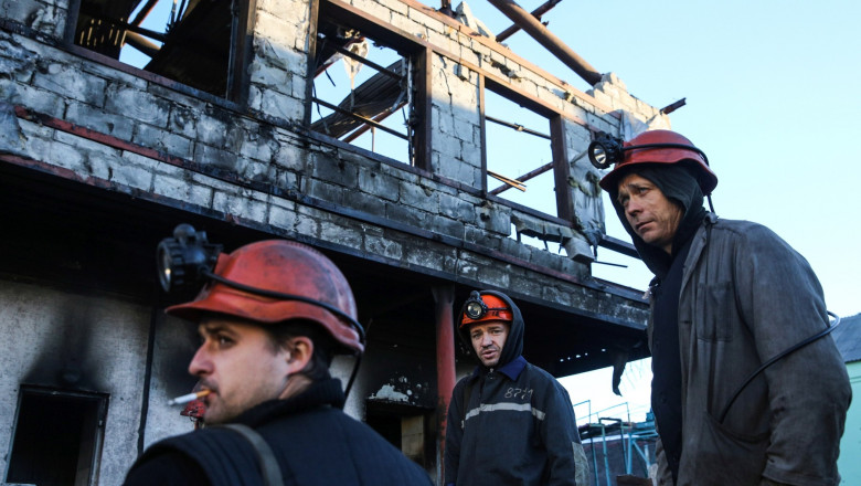 „Încercăm să fim pozitivi. Dar ne doare sufletul. E deprimant. Sunt vremuri oribile. E trist și acasă, soția mea a plecat, am rămas singur aici”, spune unul dintre minerii din Torețk, Vitali Hahorder. A lucrat la mină jumătate de viață, familia lui s-a alăturat recent exodului de oameni care s-au refugiat din calea războiului.