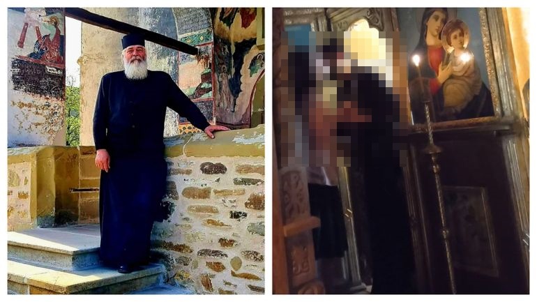 FOTO - Noi imagini șocante de la Mănăstirea Vlădiceni: Ucenicul părintelui Calistrat, surprins în timp ce încerca să sărute o credincioasă
