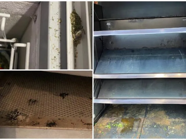 - utilizarea unor vitrine frigorifice insalubre, cu insecte, resturi alimentare, praf; utilizarea unor cuptoare, la raioanele de panificaţie-patiserie, neigienizate corespunzător şi a unor tăvi arse;
