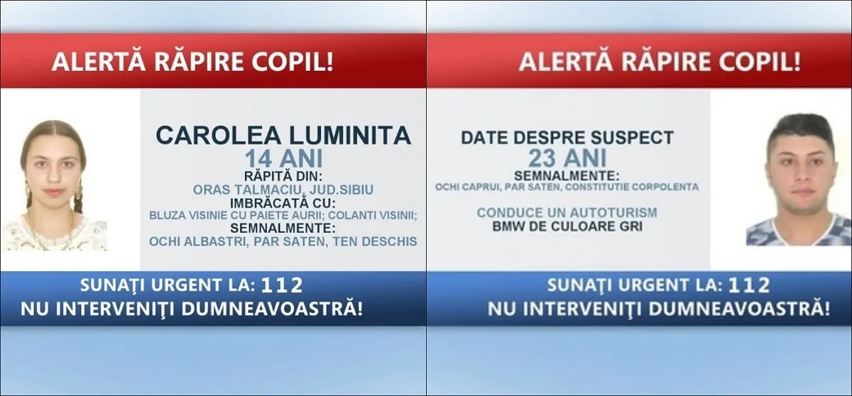 FOTO - Fata de 14 ani din Sibiu, care ar fi fost răpită, a fugit de bunăvoie cu iubitul de 23 de ani