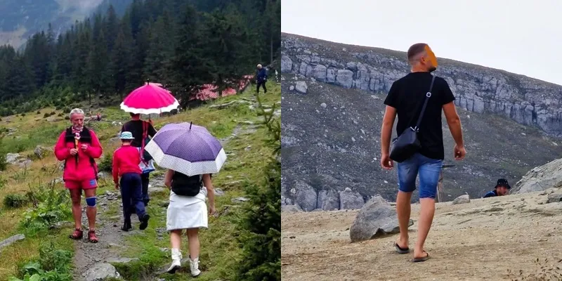 FOTO - Turist, surprins în șlapi de plajă și blugi în Bucegi la Sfinx: „Ei nu înțeleg. Nu poți să mergi așa pe munte”