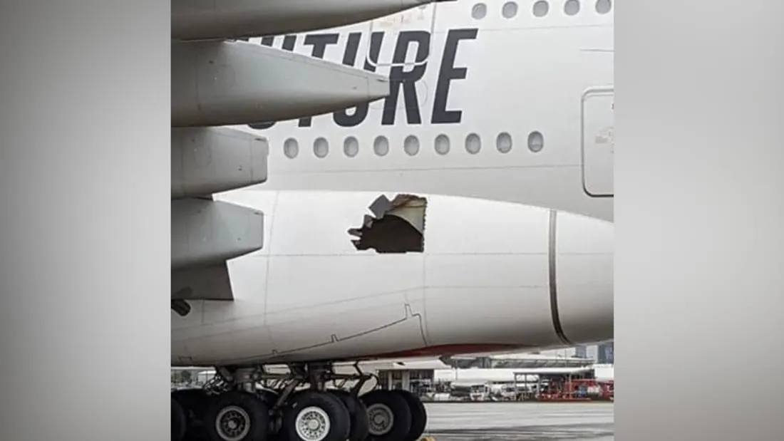 Imaginile cu avionul Airbus A380 distribuite pe rețelele sociale arată amploarea spărturii, care s-a produs din cauza exploziei unui cauciuc în urma unei „probleme tehnice” în timpul zborului, potrivit companiei aeriene.