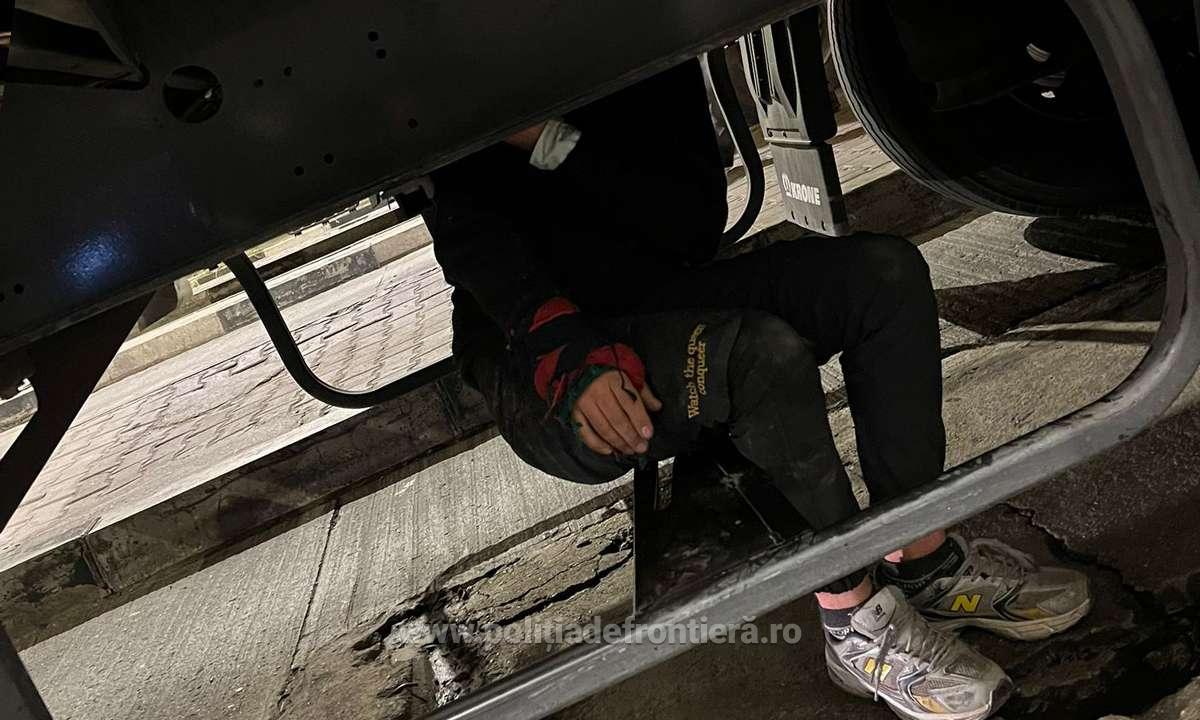 FOTO - Un băiat afgan a încercat să intre în România, ascuns pe osia remorcii unui TIR. Băiatul de doar 17 ani voia să ajungă în Germania