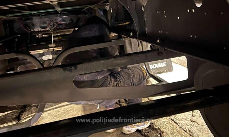 „În Punctul de Trecere a Frontierei Giurgiu, pe sensul de intrare în ţară, poliţiştii de frontieră au efectuat controlul specific asupra unui autocamion condus de un cetăţean turc, în vârstă de 38 de ani, care transporta textile din Turcia pentru România şi Serbia. În urma controlului fizic efectuat asupra mijlocului de transport a fost descoperită ascunsă, pe osia semiremorcii autocamionului, o persoană de sex masculin”, au declarat reprezentanții ITPF Giurgiu, potrivit Agerpres.