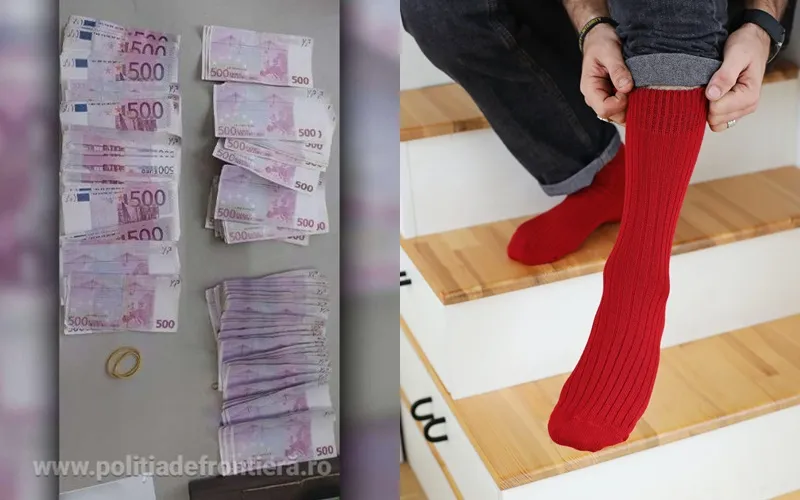 FOTO - Un bărbat, prins când încerca să intre în România cu 80.000 de euro ascunși în șosete. Ce au mai găsit polițiștii asupra sa