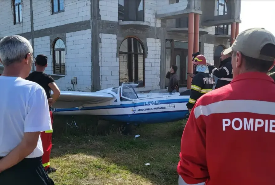 FOTO - Un planor, pilotat de o fată de 17 ani, aflată la primul zbor, s-a prăbușit într-o curte din Craiova