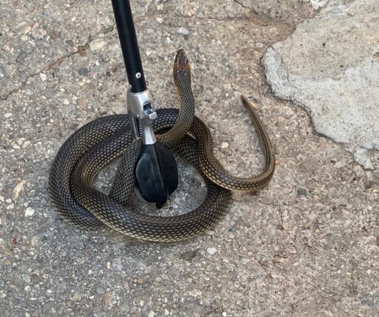 „Pe strada Strehareți din municipiul Slatina, în holul unei locuințe, un șarpe de aproximativ 2 metri a fost capturat și eliberat în mediul natural. Deși astfel de șerpi sunt neveninoși, apariția lor nu este agreată de oameni. În caz de nevoie, cu încredere, solicitați sprijinul nostru!”, au mai scris jandarmii.