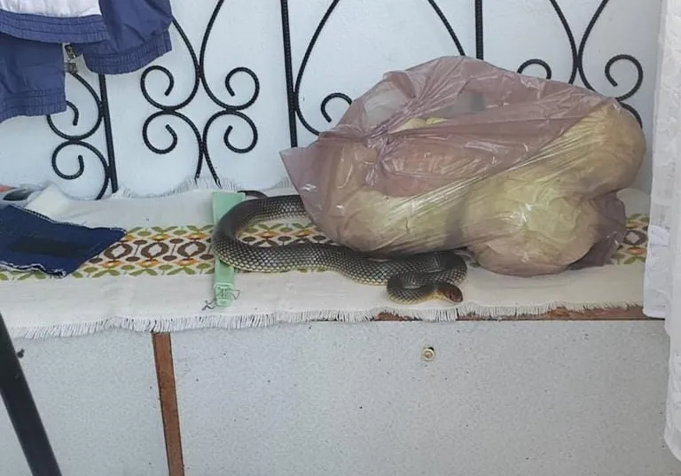 FOTO - Un șarpe de 2 metri, găsit într-o locuință, de un echipaj de jandarmi: „Avem un șarpe în casă! Vă rog să trimiteți pe cineva aici!”