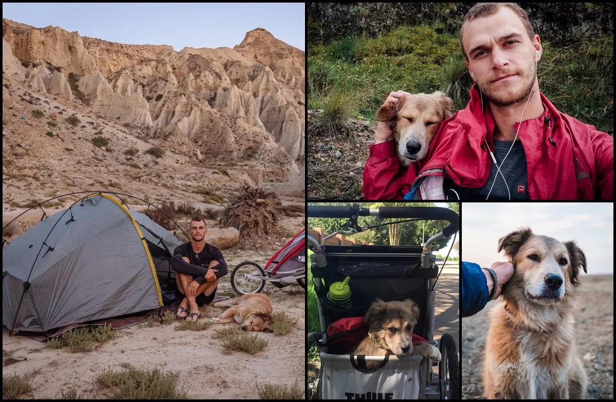 FOTO - Un tânăr de 33 de ani a devenit a zecea persoană care face înconjurul lumii pe jos. A plecat „în lume” acum 7 ani, pe drum a adoptat o căţeluşă