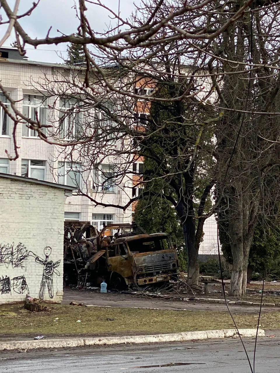 În Trostyanets, la 59 de kilometri de Sumy, un spital modern a fost distrus, clădiri rezidențiale cu mai multe etaje sunt arse, vehicule blindate abandonate, trenuri deformate, o gară distrusă, o fabrică de dulciuri avariată. Se pare că acesta este ca un decor al filmului „Rage” cu Brad Pitt. Dar totul este adevărat. Ura față de aceste distrugeri este nemărginită, la fel și recunoștința față de armata noastră. Vom restaura totul. Nu vom uita nimic. Și nu vom ierta niciodată”, a scris jurnalistul.