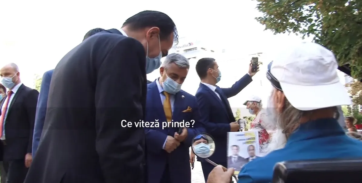 Premierul Ludovic Orban a întrebat un bătrân în scaun electric ”ce viteză prinde”, la Pitești, în timpul unei vizite electorale.