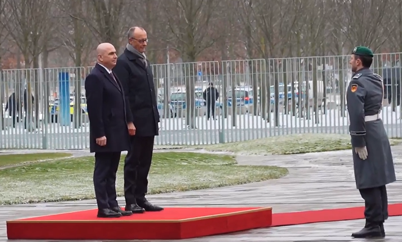 Ceremonia de întâmpinare a avut loc pe platoul din fața sediului guvernului federal și a inclus onoruri militare și intonarea imnurilor naționale ale celor două state, marcând caracterul oficial al întâlnirii dintre cei doi lideri.