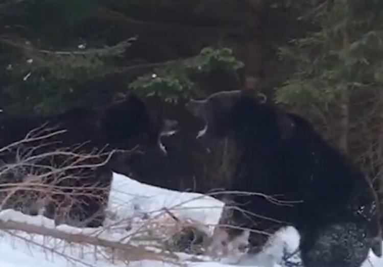 Vorbim despre imagini foarte rare și spectaculoase cu o confruntare puternică între doi urși într-o pădure administrată de Ocolul Silvic Broșteni din cadrul Direcției Silvice Suceava