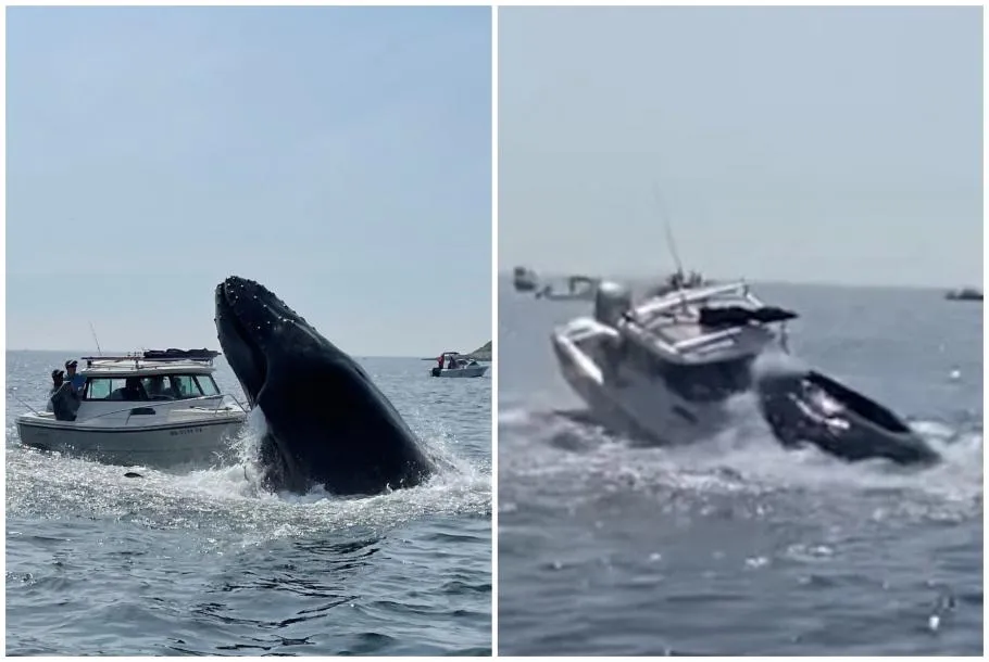 Saltul unei balene cu cocoaşă, care s-a avânatat din apă şi a aterizat direct peste o barcă, i-a impresionat pe cei care au văzut imaginile desprinse parcă dintr-un film. Incidentul, care s-a petrecut duminică, 24 iulie, în Plymouth, Massachusetts, nu a avut urmări grave: nu a fost înregistrată nicio victimă, spun autorităţile citate de NBC Boston. În schimb, mărturie rămân filmările şi fotografiile, care surprind momentul fascinant.