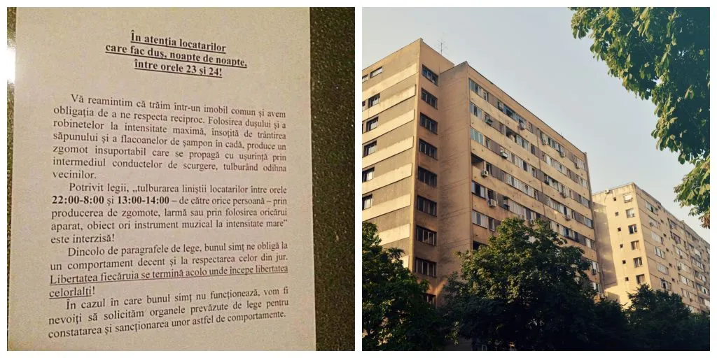 Locatarii unui bloc amenințați cu poliția, dacă mai fac duș noaptea: Se aude cum scăpați săpunul