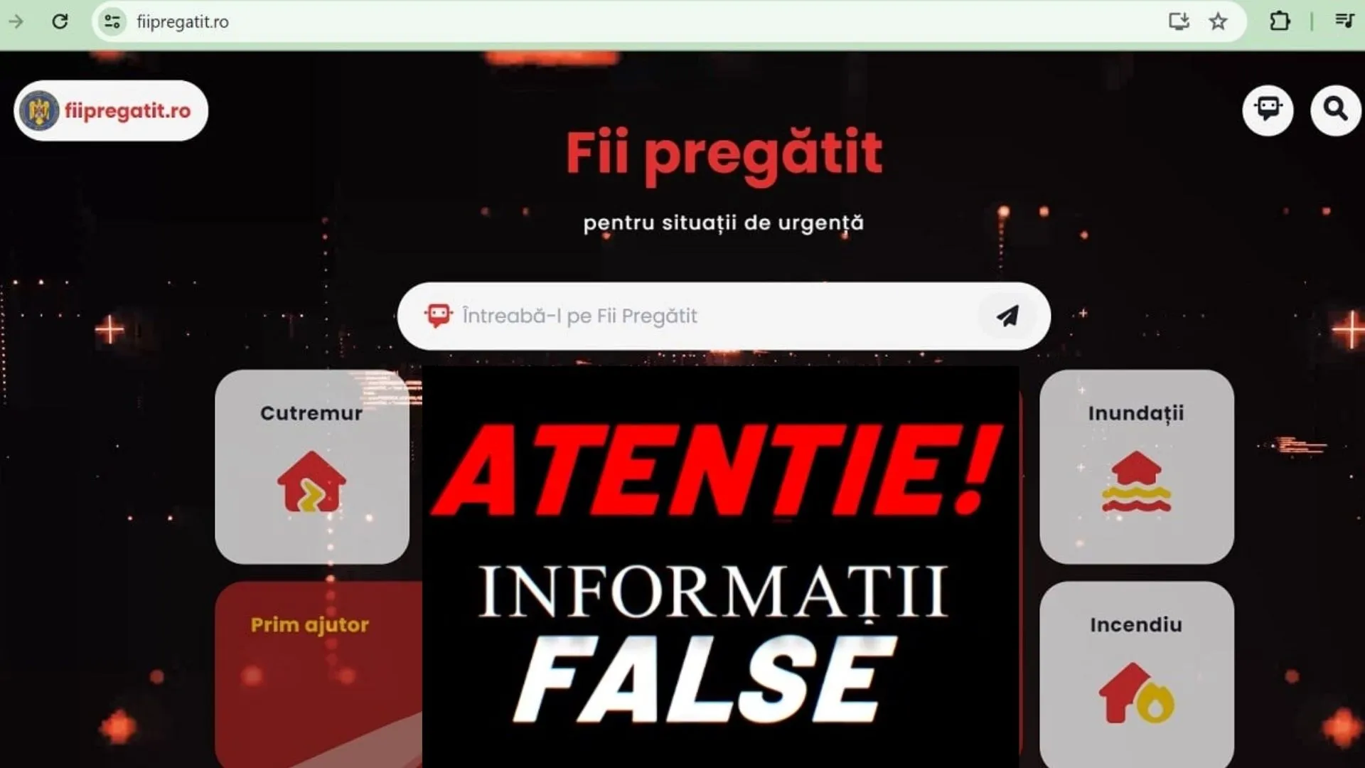 Departamentul pentru Situații de Urgență (DSU) a făcut precizări clare după ce în emisiunea Dan Diaconescu Direct au fost prezentate informații false despre platforma națională fiipregatit.ro. Afirmațiile făcute de domnul Cezar Ionașcu, potrivit cărora platforma ar fi costat milioane de lei și ar fi urmat să primească finanțări uriașe, sunt complet false, subliniază autoritățile.