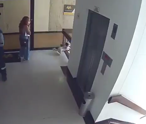 Femeia a ieșit din lift, iar băiețelul ei s-a strecurat printre gratiile de la balustradă. Mămica a sărit cu viteză uluitoare și a prins copilul de picioare.