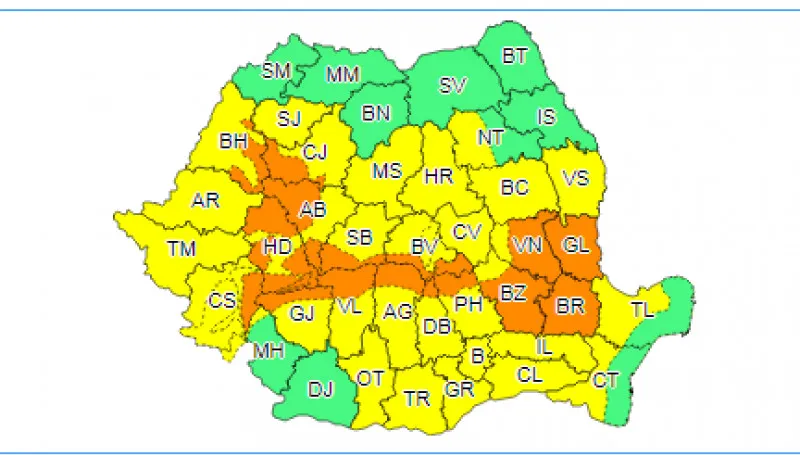 Codul portocaliu a intrat în vigoare joi, la ora 10.00, și este valabil până vineri, la ora 10.00. În zona Carpaţilor Meridionali şi a Munților Apuseni, precum și în sudul Moldovei și nord-estul Munteniei vor fi ploi abundente și se vor acumula cantități de apă ce vor depăși 40...60 l/mp.